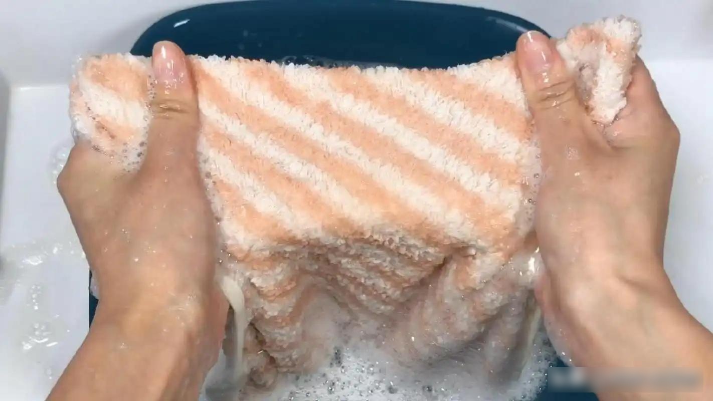 搓洗完之后,再用清水冲洗干净就可以。这个时候就会发现,原本发硬、发臭的毛巾,变得柔软又清新,用起来特别舒服。