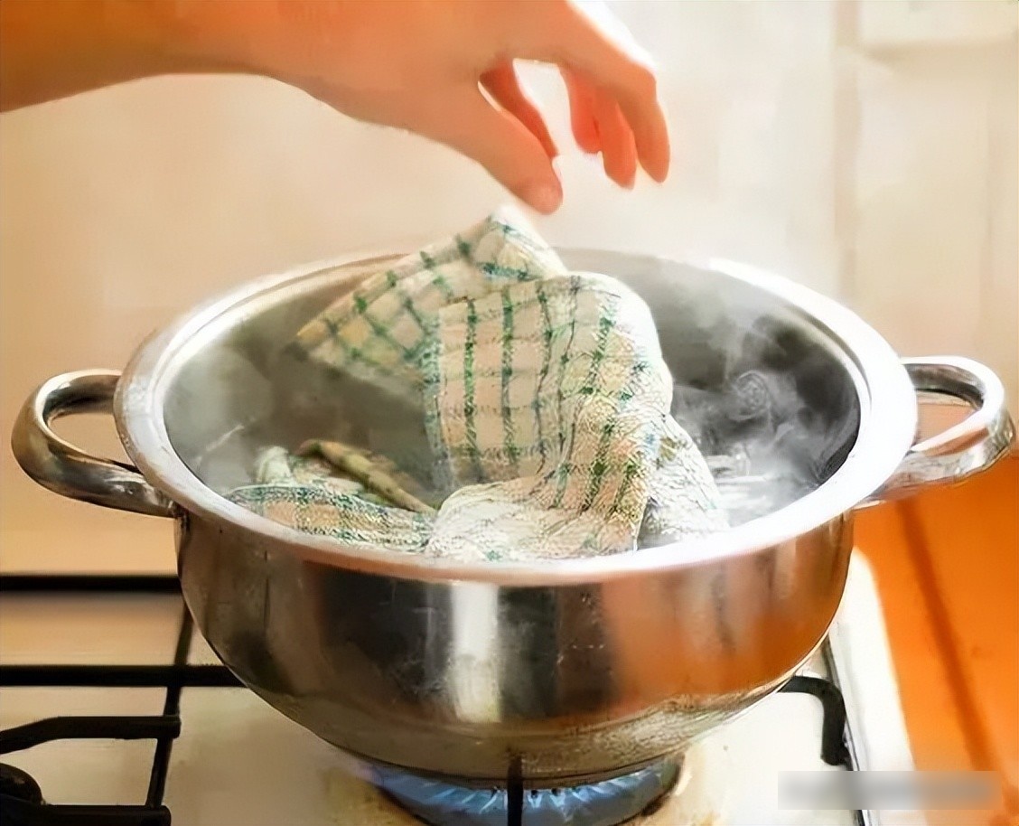 如果觉得水煮的方法太麻烦,也可以等毛巾清洗完之后,直接放进微波炉里面加热5分钟。通过微波炉里面的高温,达到杀菌、消毒的作用。